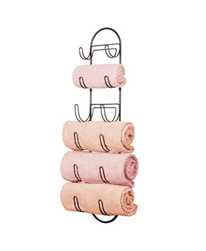 SMART STORAGE: The wall mounted towel rack has six tiers of storage to keep your hand and bath towels in one convenient place and within easy reach; The easy two-piece assembly takes minutes to complete and all hardware is included; Perfect for master bathrooms, guest bathrooms, powder rooms and half baths; The compact, vertical-format design is great for small spaces
