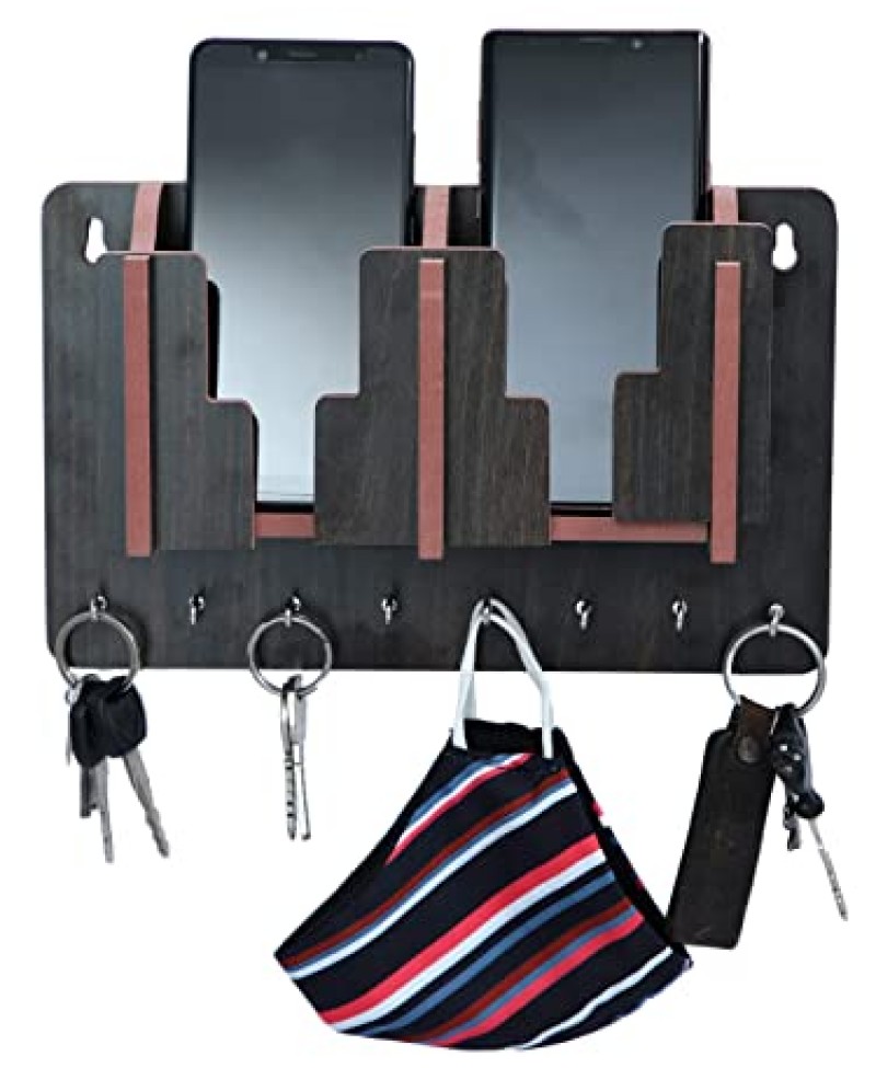 (1)Product totally is Well-Constructed, Sturdy, Durable to use for many years. Heavy Hook Weight Capacity up to 10 kg. 100% Eco-Friendly and Environmentally Safe. (2)100% QUALITY. For Making RUNNER key/Mobile charging stand only the best High - Quality MDF wood Material. The excellent Handcraft has a Smooth Texture that won't scratch your Cell phone. The surface is treated with a Special Protective Laminate. (3)UTILITY/ MULTI-USE: Small Spaces Require More Creativity , Easy to Cleaning, Compatible with all kinds of Smartphones Holder. RUNNER KEY HOLDER is the organizer for fitness trackers, bracelets, keys, stationary, coat, purse, scarf etc. RUNNER KEY (4)HOLDER SUITABLE FOR: living room, bedroom, kitchen, hall, study room, Bedside nightstand, home & office. (5)BEST GIFT PRODUCT/KEY HOLDER :- Runner Multi-Purpose Key Holder cum Mobile Charging Stand is the best gift idea for you. Surprise your Husband, Dad, Son, Boyfriend, Brother, your friend, co-worker or Boss. Best gift for Marriage, Christmas, Birthday, Father’s day, Anniversary For all events. (6)FITTINGGS AND EASY TO ASSEMBLE – Simply Follow included instructions and Adjust the parts into the Appropriate slots, Convenient for charging cable & viewing Notification on the screen.